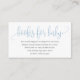 A cute and simple Books For Baby enclosure card. Let your baby shower guests know that you're requesting books instead of cards. This enclosure card features dusty blue lettering and matches perfectly with the Baby Bash invitation in this collection. To add different wording, just select the "Personalise" button on the right.