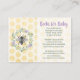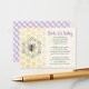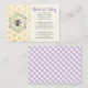 This mummy to bee girl baby shower books for baby card features a cute little bee within a floral watercolor wreath, yellow honeycomb background and a gingham backside pattern in purple and white. Build baby's library with this cute insert card! Matching invitation available in store.