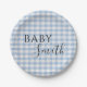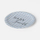 Baby Q, Baby Shower Blue Barbecue Custom Name Paper Plates, Editable Text and Colours, Gingham Check, Please message me if you need other custom products to match. Perfect Blue for a boy baby shower!