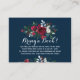Elegant modern floral navy burgundy bring a book insert card with red burgundy and white peonies bouquets with winter seasonal pine green fir branches, red berries and foliage on dark midnight blue background. Perfect for a winter / Christmas floral themed baby shower.