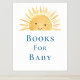 This Books for Baby Baby Shower Sign features a yellow watercolor smiling sun and blue typography. Original Watercolor © Michele Davies.