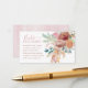 This charming Books for Baby enclosure card is a sweet addition to your Baby in Bloom baby shower invitations. Featuring a romantic watercolor floral arrangement in blush, terracotta, and soft greenery, it beautifully complements fall, garden, or boho baby shower themes. The thoughtful poem invites guests to bring a beloved children’s book instead of a traditional card, creating a meaningful library for the baby filled with special messages and treasured memories.