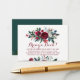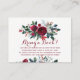 Elegant modern floral navy burgundy bring a book insert card with red burgundy and white peonies bouquets with winter seasonal pine green fir branches, red berries and foliage. Perfect for a winter / Christmas floral themed baby shower.