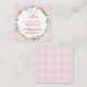 This sweet little enclosure card requests your guests to bring a book to the baby shower, rather than a card. It's on a pink gingham check background with a wreath of wildflowers and the poem inside.