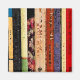 This magnet features a shelf of colourful books. They form an interesting abstract vertical geometrical composition.