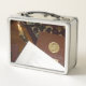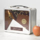 This is a standard metal lunchbox that appears to work just fine. We designed this box ourselves with an uploaded photo and custom text on the front and back. It looks absolutely beautiful except the front of the lunchbox is not centered like it shows in the photo. The print borders don't align with the inset flat part of the box where the preview photo online showed it perfectly centered in there. The back looks nice and centered though.