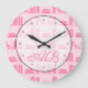 This pink clock with a bookshelf pattern, has personalizable lovely script font initials in pink and dots to mark the hours. The clock featuring bookshelves could be perfect for a reader who loves girly style things or a teenage girl's room especially if they have a lot of books.