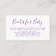 A perfect way to ask your guests to bring a book to your next baby shower! Purple calligraphy paired with a modern font is the perfect way to make this card pop.