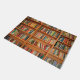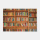 School library educational books on a brown wooden bookshelf for teachers, students and bookworms.