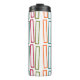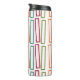 This thermal bottle has a mid-century modern design of repeating rectangles in teal, orange, beet and orange on a field of white. If you like the design but prefer different colours, message me.