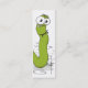 Original illustration of a funny looking green bookworm posing in a cool attitude pose. On the front of this bookworm mini bookmark business profile card template is one half of a worm with a face and on the other side is another half of bookworm illustration which shows he's peeking out of a hole. All the text is customisable, on the front is a space for your website text, which can be used for other text instead, and on the back is space for all other information about you. To customise this profile card bookmark click Customise it button under the image.