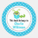 Bookworm This Book Belongs To Bookplate Blue Spots Classic Round Sticker