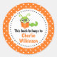 Bookworm This Book Belongs To Bookplate Orange Classic Round Sticker