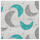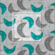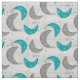 Mid-Century Modern boomerang fabric in grey and teal on a light grey background. Classic mid-century intersecting lines and star pattern.