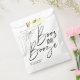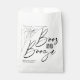 Use personalised favour bag for your Halloween party. The card features the text "boos and booze" in a hand-lettered font with spider webs as a border.