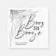 Use personalised napkins for your Halloween party. The card features the text "boos and booze" in a hand-lettered font with spider webs as a border.