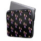 The sleeve is made of nice feeling material and seems very durable. I'm not sure how easy it'll be to clean, but the construction seems sound and the fabric is quick thick. I also like the double zipper. The printing is lovely and appears durable. The white on black contrast is nice, and the design very elegant.