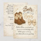 Classic beige and tan neutral tones with an understated simple adorable background and little boots and a bow for a cute Gender Reveal theme.
