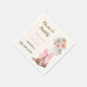 The Boots and Bubbly bridal shower napkin features brown cowgirl boots, a pink bow, colorful flowers, pink, brown, and black text, and a tan background.