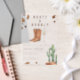 This design features modern neutral colours in a watercolor application. Design in cow print, glass of champagne, desert cactus, cowboy boots.