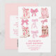 This trendy design coquette aesthetic pink bows and boots design offers customisation with the bride's name, date, RSVP text, and location.