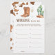 This design features modern neutral colours in a watercolor application. Design in cow print, glass of champagne, desert cactus, cowboy boots.