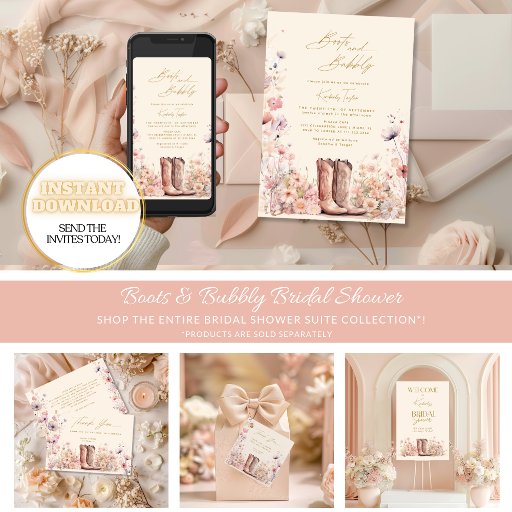 Saddle up for a celebration like no other with our charming Cowgirl Boots Bridal Shower Thank You Card! This delightful design features whimsical watercolor cowgirl boots adorned with beautiful wildflowers, creating a scene of rustic charm and natural beauty. Each bloom bursts with colour, evoking the spirit of the great outdoors and the allure of the countryside.
