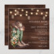 Boots Cowgirl Cowboy String Lights Floral Wedding Invitation