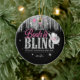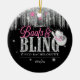 Get the party started with these fun "Disco Bachelorette" ornaments in sparkling silver and pink on a black background. The eye-catching "Boots & Bling" typography, glittering cowgirl hat are accented by a silver fringe border. Add your name and event date using the provided template. Search ID925 to see other products in the trendy collection.