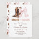 Perfect for a western or rodeo themed gender reveal party, this invitation features a beautiful pink bow and a pair of cowboy boots symbolising the classic "He or She" theme.