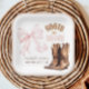 Boots or Bows Gender Reveal Paper Plates featuring a pair of western cowboy boots and a cute girly ribbon bow. What will baby be?