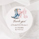 Boots or Bows Gender Reveal thank you stickers featuring a cute pink ribbon bow.