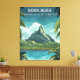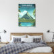 Bora Bora, French Polynesia in bold travel poster style. Tropical lagoon, mountain peak, palm framing, crisp destination lettering. A statement canvas for an entryway, bedroom, office, honeymoon suite, beach themed wall. Gift-ready for travelers, island lovers, anniversary trips.