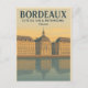 Vertical 2:3 retro vintage travel poster of Bordeaux — France, elegant riverside view of Place de la Bourse reflected in the Garonne River at calm golden hour, grand classical facades simplified into clean vintage poster geometry with soft grain.
