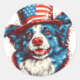 Show off your love for both your country and your furry friend with our adorable Patriotic Border Collie. This charming design features a lovable Border Collie proudly wearing a hat adorned with the American flag, perfect for pet lovers and patriots alike.