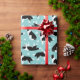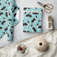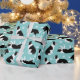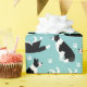 Cute black and white border collies sit, stay and rollover on a blue background with pawprints, a fun dog themed pattern.