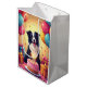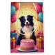 A lively birthday scene featuring a Border Collie enjoying a fun celebration surrounded by colourful balloons, gifts, and a bright birthday cake. The cheerful details and vibrant colours create a joyful design full of energy and happiness.