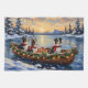 Bring intelligent, devoted charm to your holiday season with this beautiful Border Collie Christmas design! This magical scene features three alert, expressive-eyed Border Collies sitting attentively in a cozy wooden boat, gently floating on a serene snowy lake at sunset. The boat is beautifully adorned with glowing Christmas string lights and fragrant pine garlands, while the dogs wear festive scarves. They are surrounded by colorful wrapped presents and cheerful holly branches. Soft snowflakes gently fall, and the shimmering reflection of the lights on the water creates a truly magical winter holiday atmosphere. This design is a perfect Christmas gift for any Border Collie owner, dog lover, or admirer of festive and impressive herding dog art, capturing the serene joy of the season.