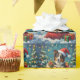 A festive and fun Christmas illustration featuring a single Border Collie sitting inside Santa’s bag full of presents while wearing a Santa hat. With glowing fairy lights, warm cozy lighting, and a festive red and green color palette, this design is perfect for dog lovers, holiday enthusiasts, and anyone who enjoys cheerful holiday artwork. Ideal for Christmas gifts, apparel, mugs, cards, and seasonal home decor.