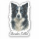 Intelligent Border Collie dog portrait, piercing blue eyes, black and white coat, alert expression, fluffy fur texture, artistic watercolor style, "Border Collie" text in elegant script font below, similar artistic quality to beagle design.