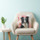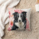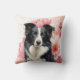 This is a gorgeous pillow to brighten any room, dorm or office, featuring a Border Collie sitting against a backdrop of big, bold pink lilies in a botanical dog lover image.