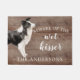 Funny beware of the wet kisser"  Border Collie Dog door mat set on a rustic faux background.  Visit our shop to view a large assortment of dog breads