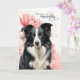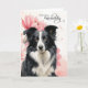 Border Collie Dog Pink Botanical Flowers Birthday Card
