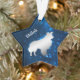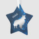 Your dog can have his/her very own personalised star ornament at Christmas! This ornament features a silver silhouette Border Collie Dog image surrounded by a blue star light night sky. Your dog's name or other text is in matching silver at the left of the image. The back of the ornament has the same starry night background, and text for you to customise. This makes a nice memorial ornament to remember a dog that has passed, also.