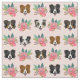 Border Collie faces pink florals Fabric