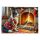 A cozy Christmas artwork featuring a beautiful Border Collie sitting beside a glowing fireplace adorned with stockings and sparkling Christmas lights. This festive holiday scene captures the Border Collie’s intelligence, loyalty, and gentle nature, making it perfect for dog lovers and warm seasonal decor. Add a touch of heart and holiday cheer to your home with this charming pet-inspired artwork.