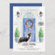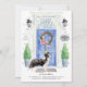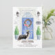 Announce your new address with our stylish announcement featuring a Border Collie, blue front door, welcome mat, slate sign, topiaries and a floral wreath set on a grey brick background.