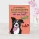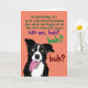 This funny greeting card for a dog lover or owner has a border collie pup looking crazy and excited and asks, "For your birthday, let's go for a ride with all the windows open…" and it goes on, asking for some things dogs love to do that people don't always enjoy that their pets do.