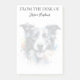 These post-its are awesome! They feature an adorable watercolor Border Collie and have "From The Desk Of" and your name in a modern script font. They'd be a super cute gift for your Border Collie loving friends or family.