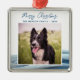 Border Collie Photo Winter Snow Merry Christmas Metal Ornament. Calm winter snow background. Merry Christmas in a trendy script. Add your dog photo. You can change the text or erase it.